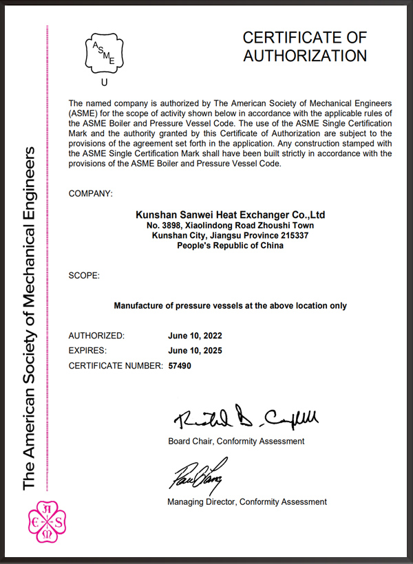A2壓力容器制造許可證,D1/D2壓力容器設計許可證;GC2管道安裝許可證;ASME U/NB鋼??;ISO9001、ISO45001、ISO14001體系認證證書等。